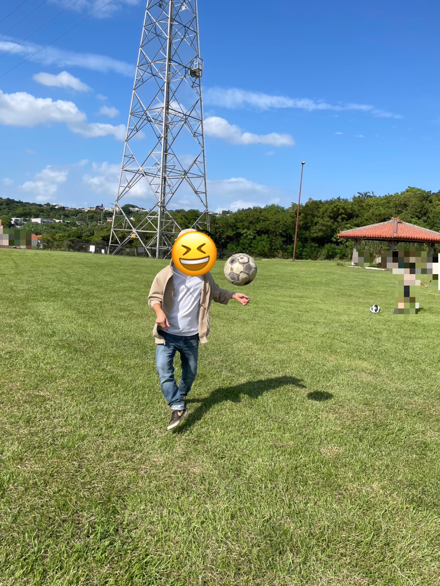 広場でリフティング勝負👊