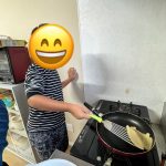 そして、材料を混ぜ終えたらフライパンを使って