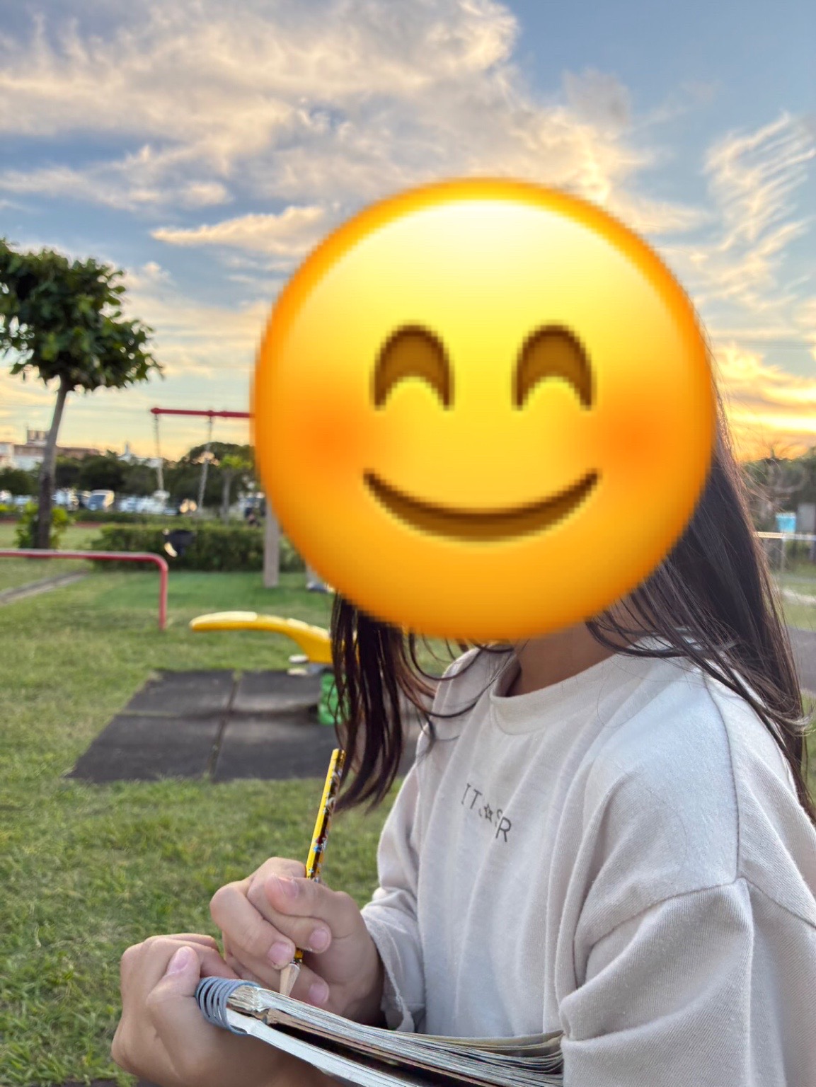 公園の風景をお絵描きする子