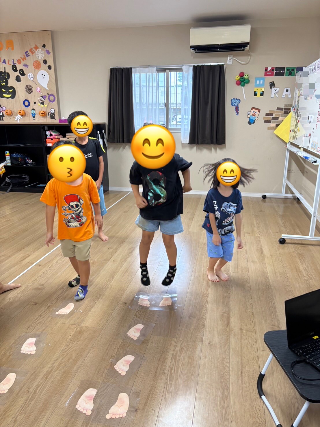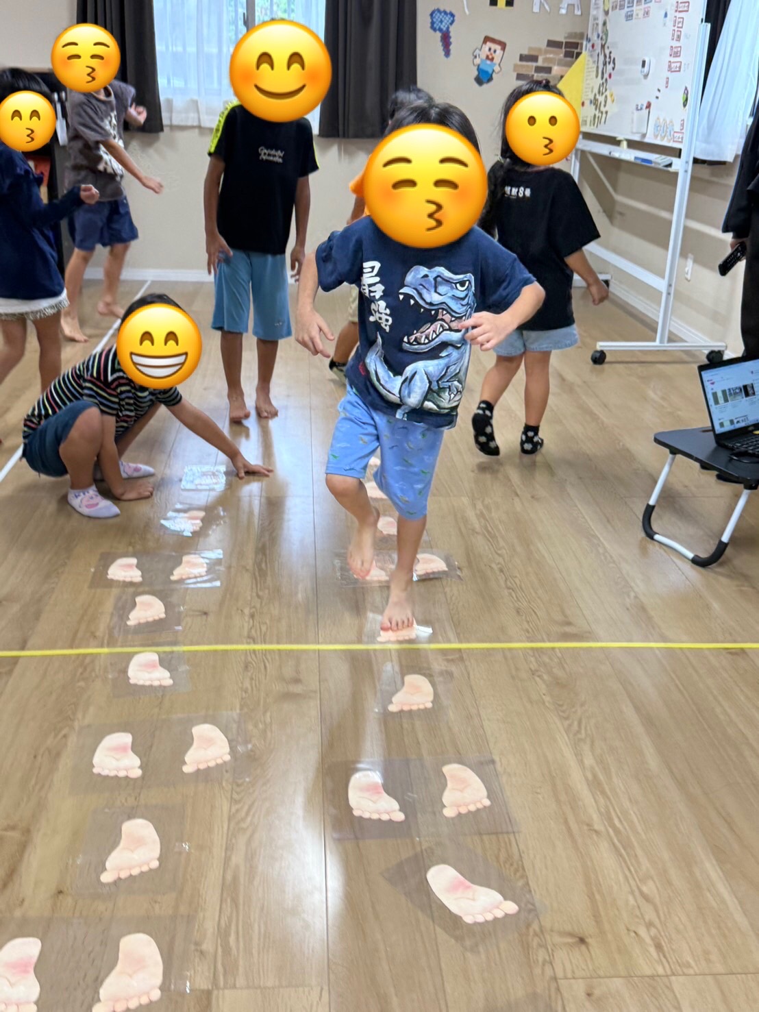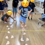 床に貼ってある足の形を見ながら上手にゴールまで進む事ができました✨