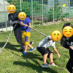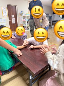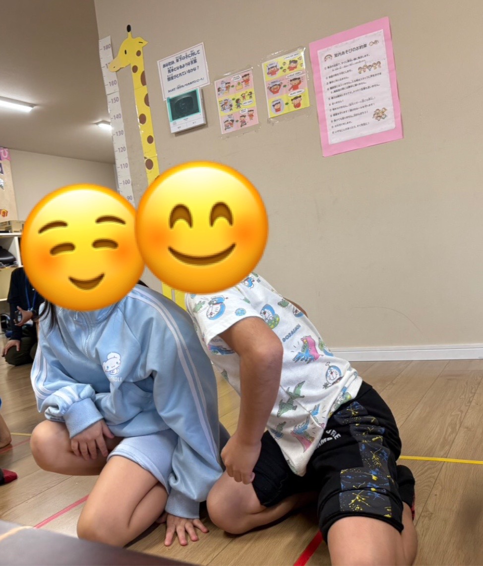 第2試合の川渡りゲームでは,お友達と協力しながらピラニア(鬼)に捕まらないよう逃げ切ることができました✨