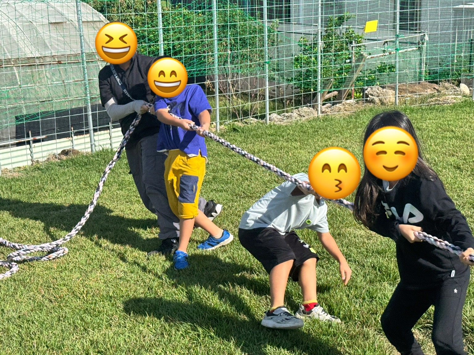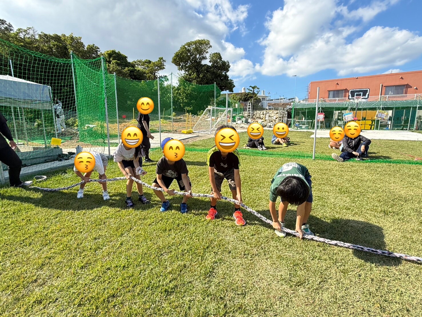 第1試合は総当たり戦で綱引きを行い,チームで作戦を立てながら一生懸命綱を引く事ができていました💪