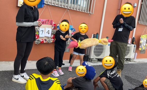 1番前のお友達が答え正解すると、グループのお友達はみんなで喜んでいました!