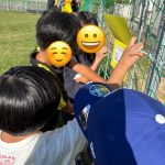 みんな「これ、分かった!」と言って前に座っているお友達の背中に書いていました😊