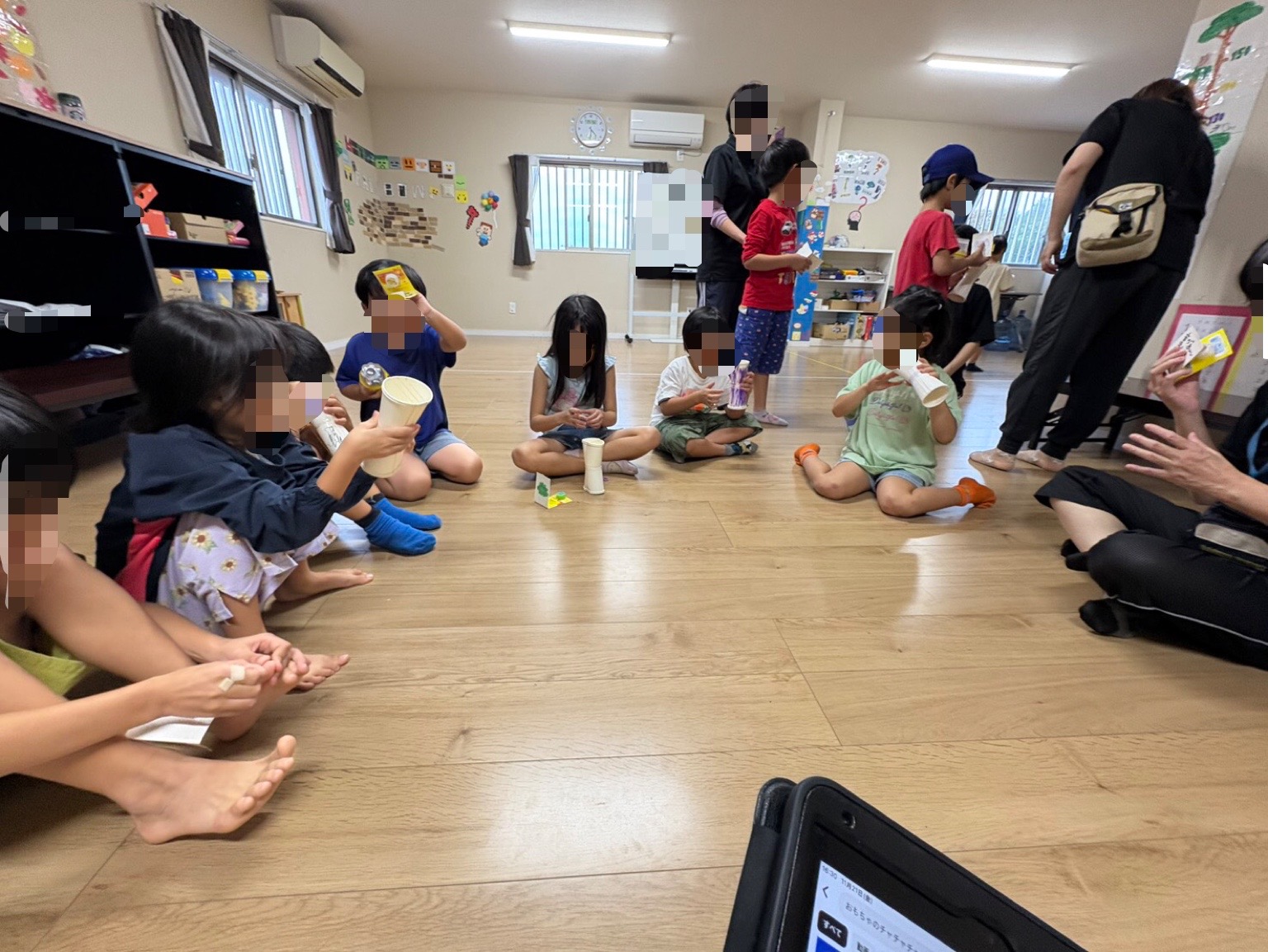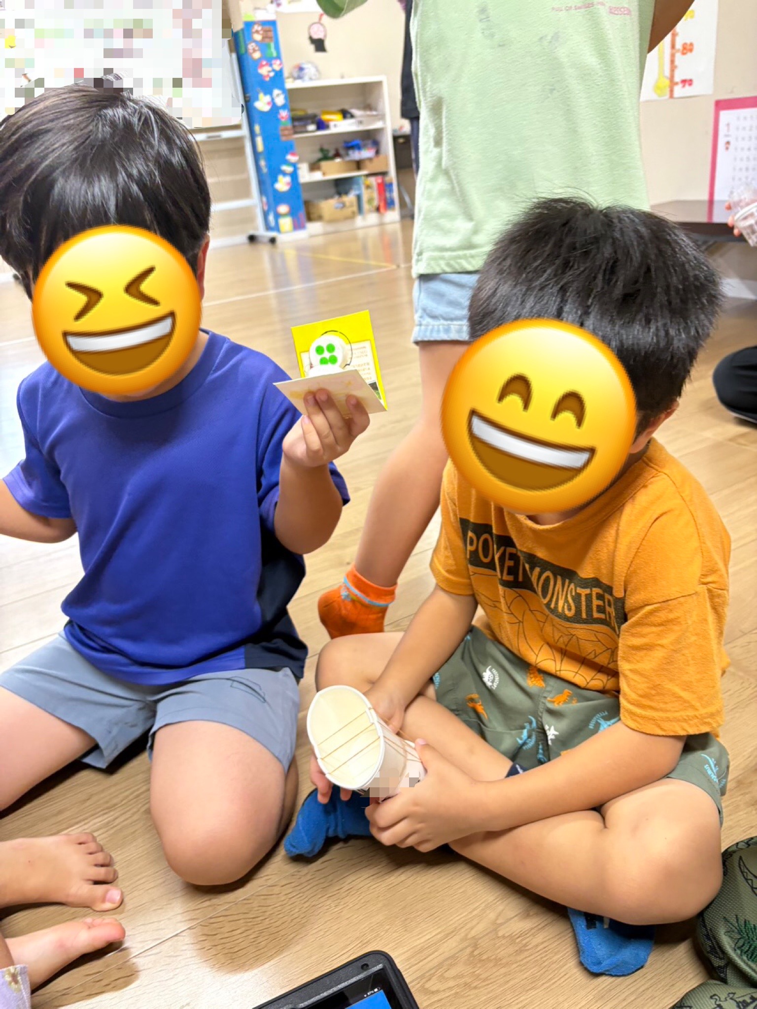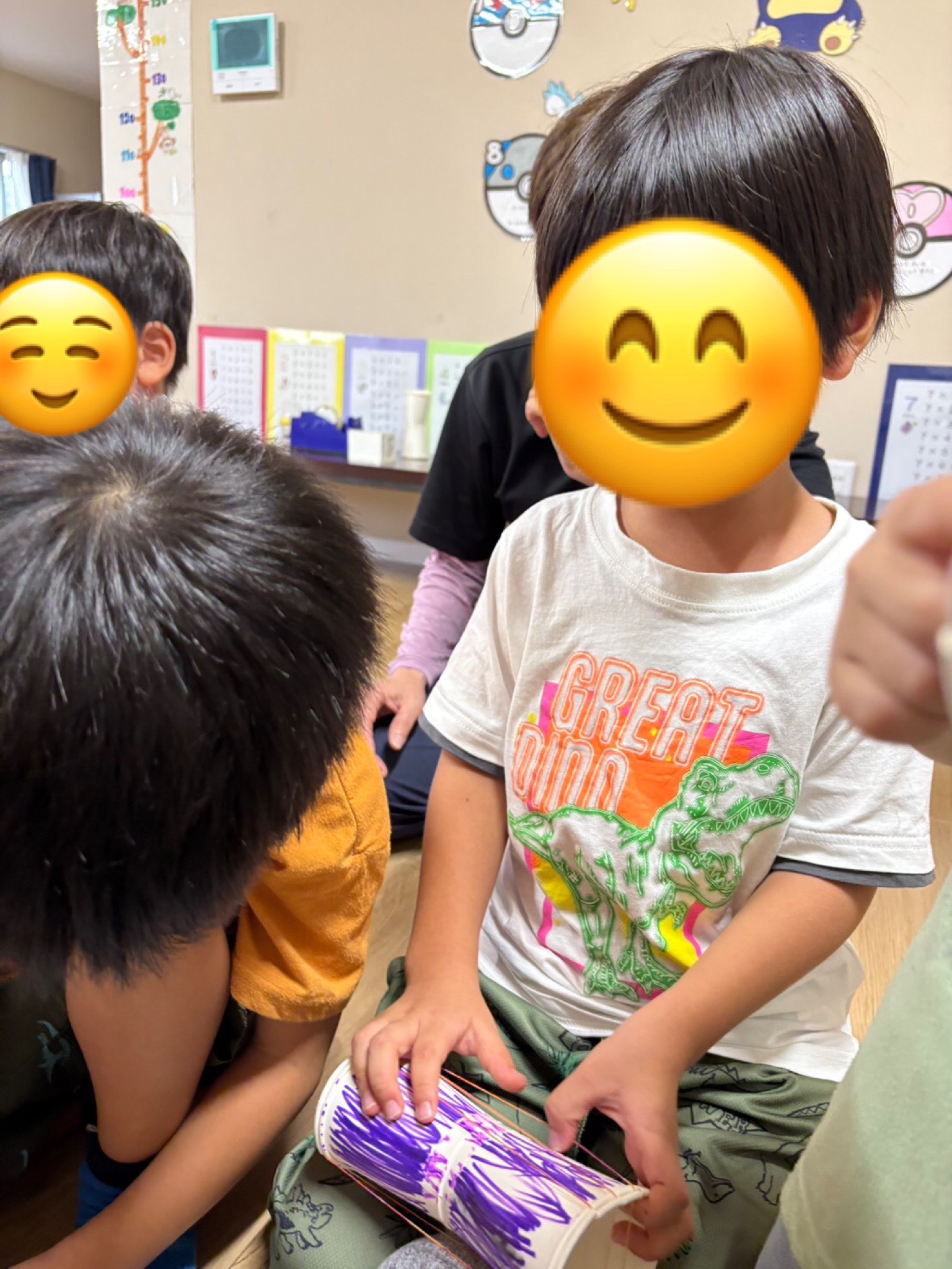 紙パックとペットボトルのキャップを使ったカスタネットも作りました🙌