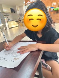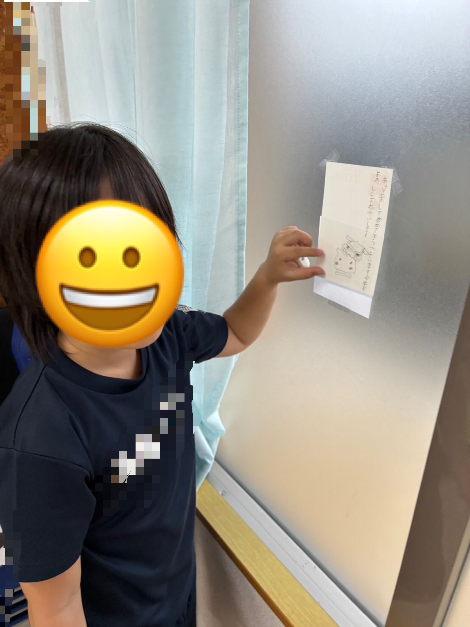 宛名書きも職員に聞きながらなぞり書きをしました。🩷