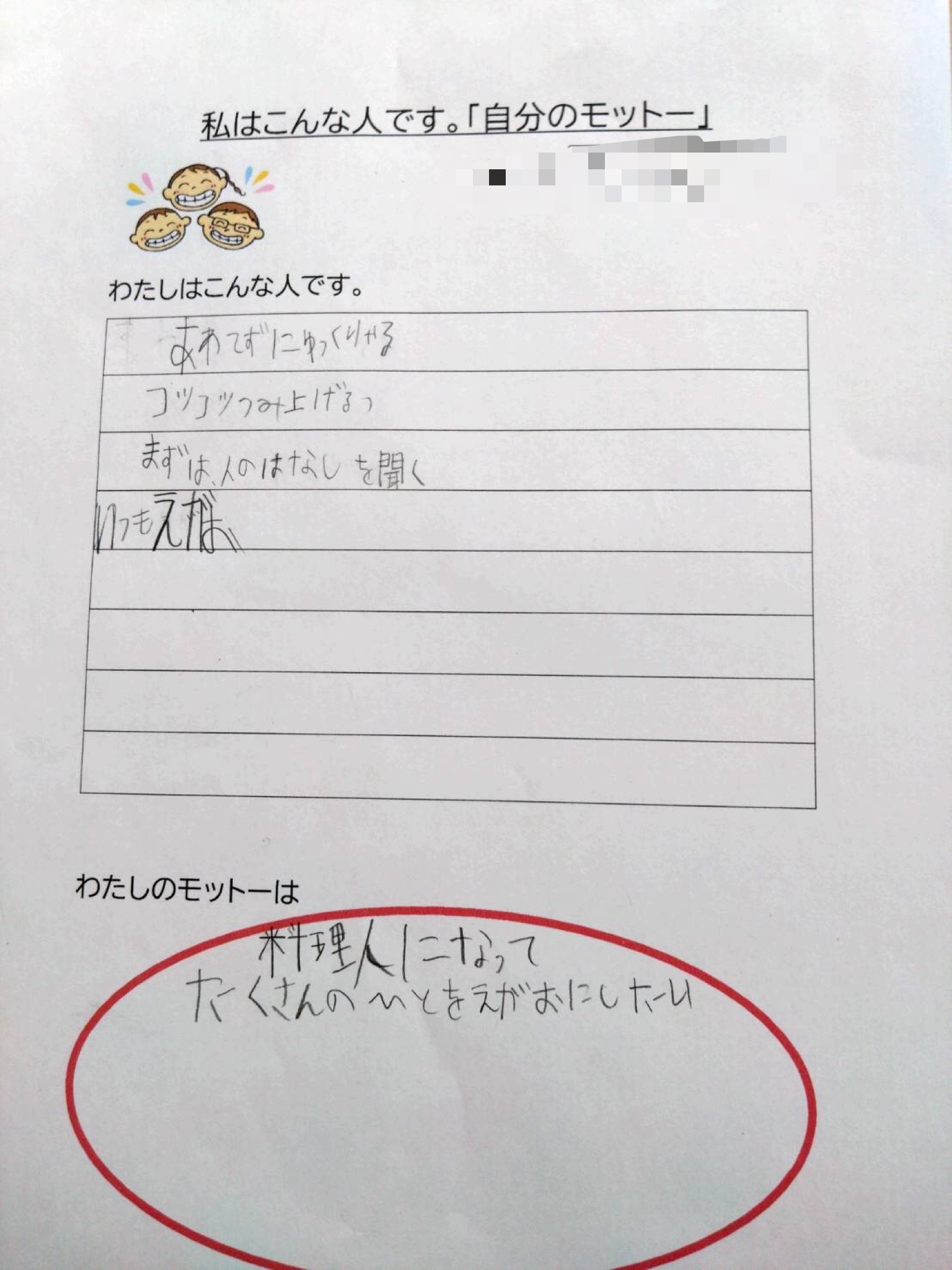 自分の得意な事・大切にしている事、どんな行動が自分らしいかを振り返って書いています😊