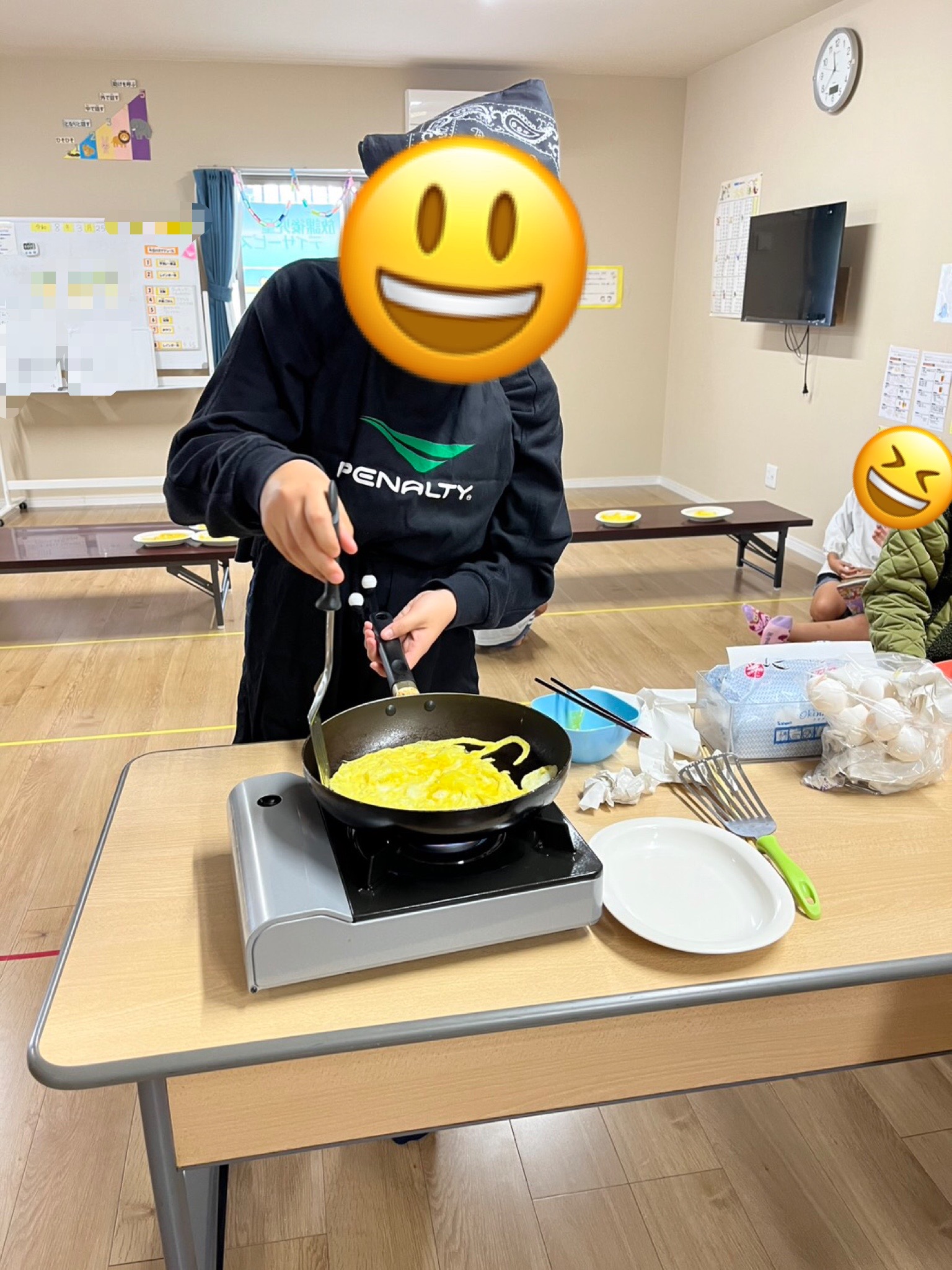 卵焼きは、ひっくり返すのに苦戦する姿がありましたが