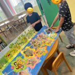 子ども達が考えたマス目には、「20マス戻る」や「じゃんけんを職員とやって勝ったら1マス進む」などがあり、今回のすごろく作りでは「10マス戻る」や「20マス戻る」が多く、「〇〇マス進める」というのが少なかったです🤣
