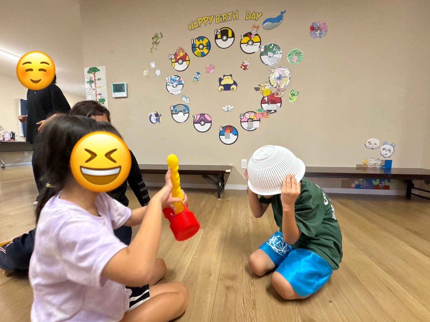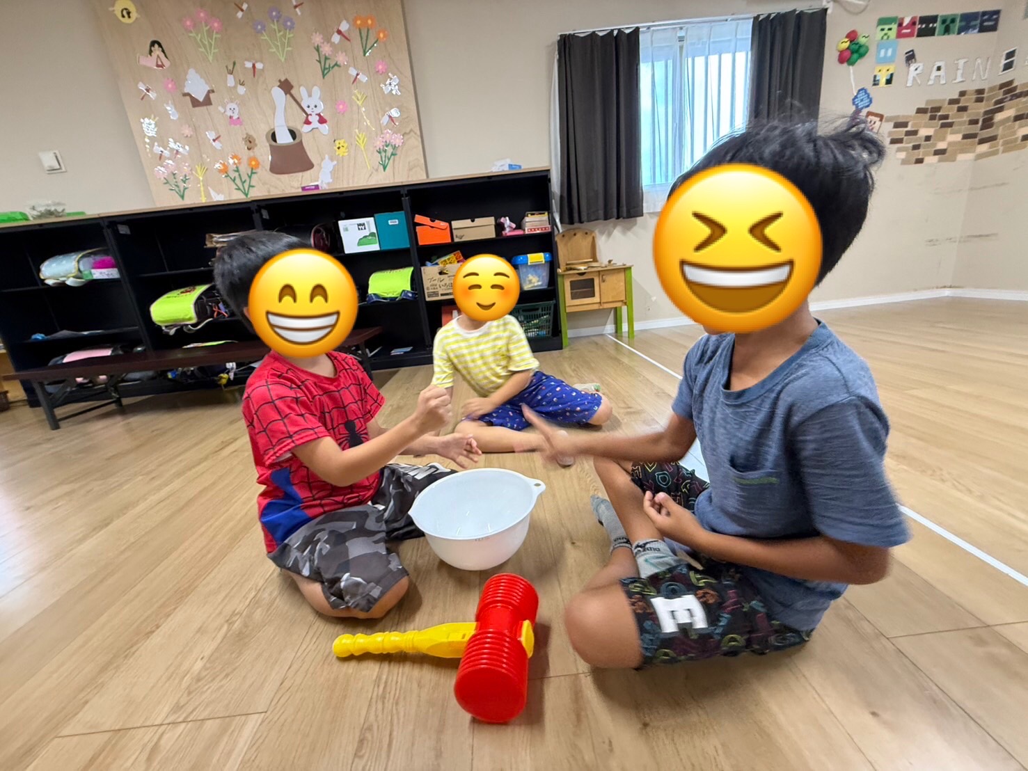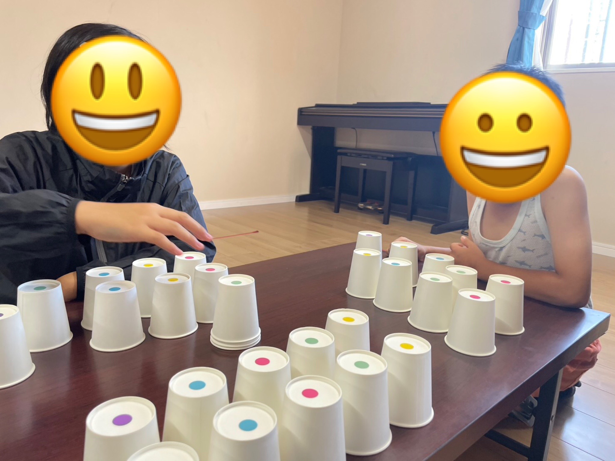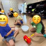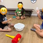 だんだん勝負が続いて行くごとにテンポもスピードアップしていき,勝ち負けがわからなくなりボウルとピコピコハンマーを逆に持って「間違えた〜😂」との発言も聞こえ,終始笑顔でゲームを楽しんでいました✨
