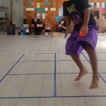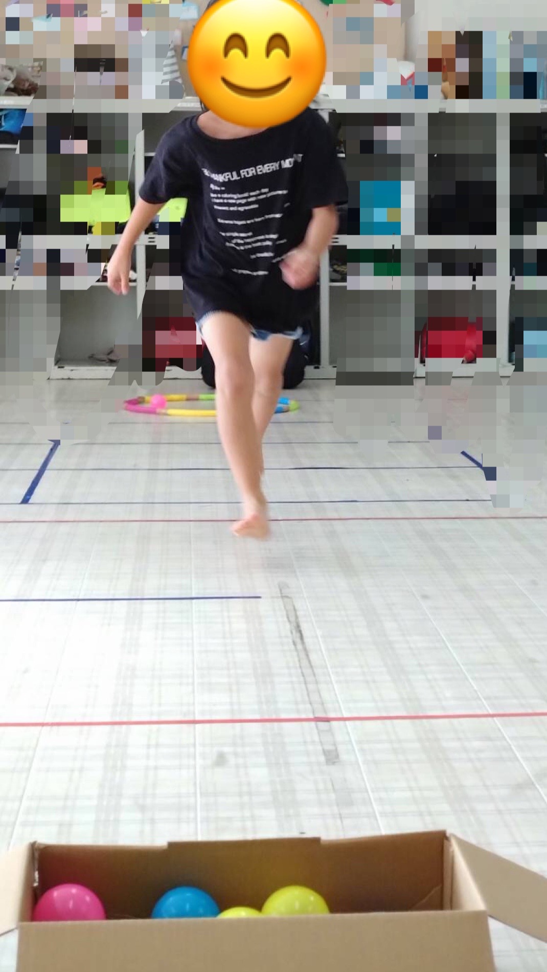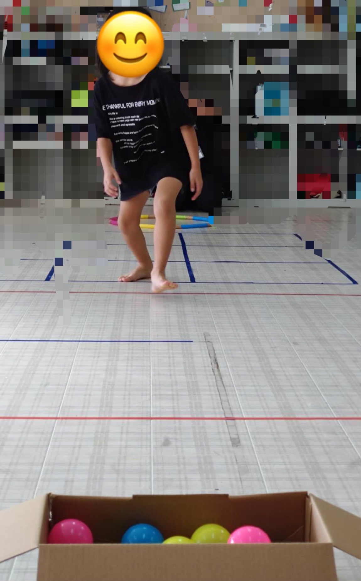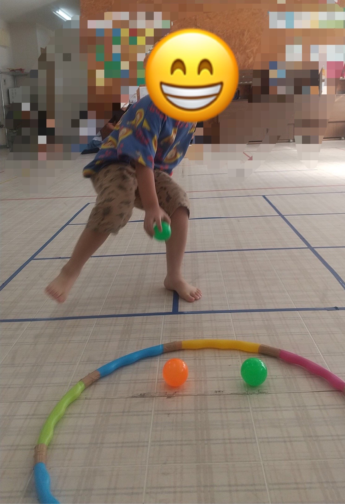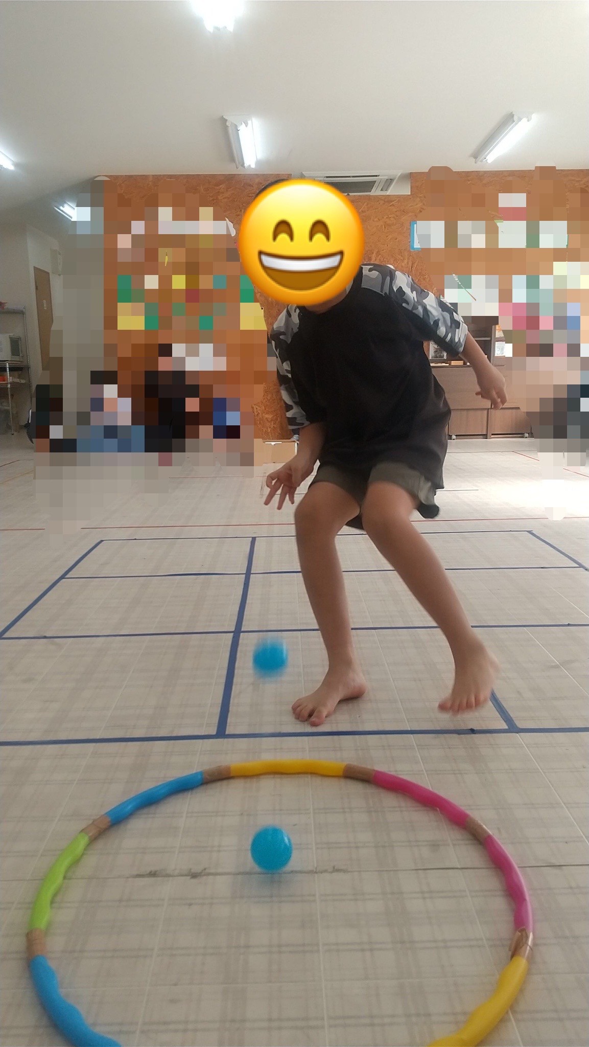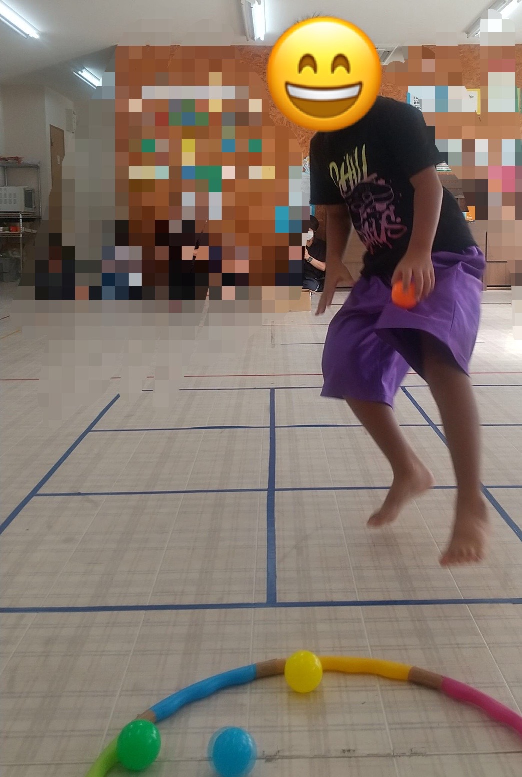 作戦を立て工夫して、ピラニア役のお友達に捕まらないように川渡りにチャレンジしています💪