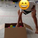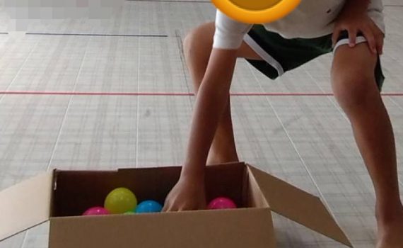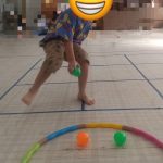 ボールを1個だけ取って、向きを変えてフラフープの円の中に入れて、の繰り返し………。
