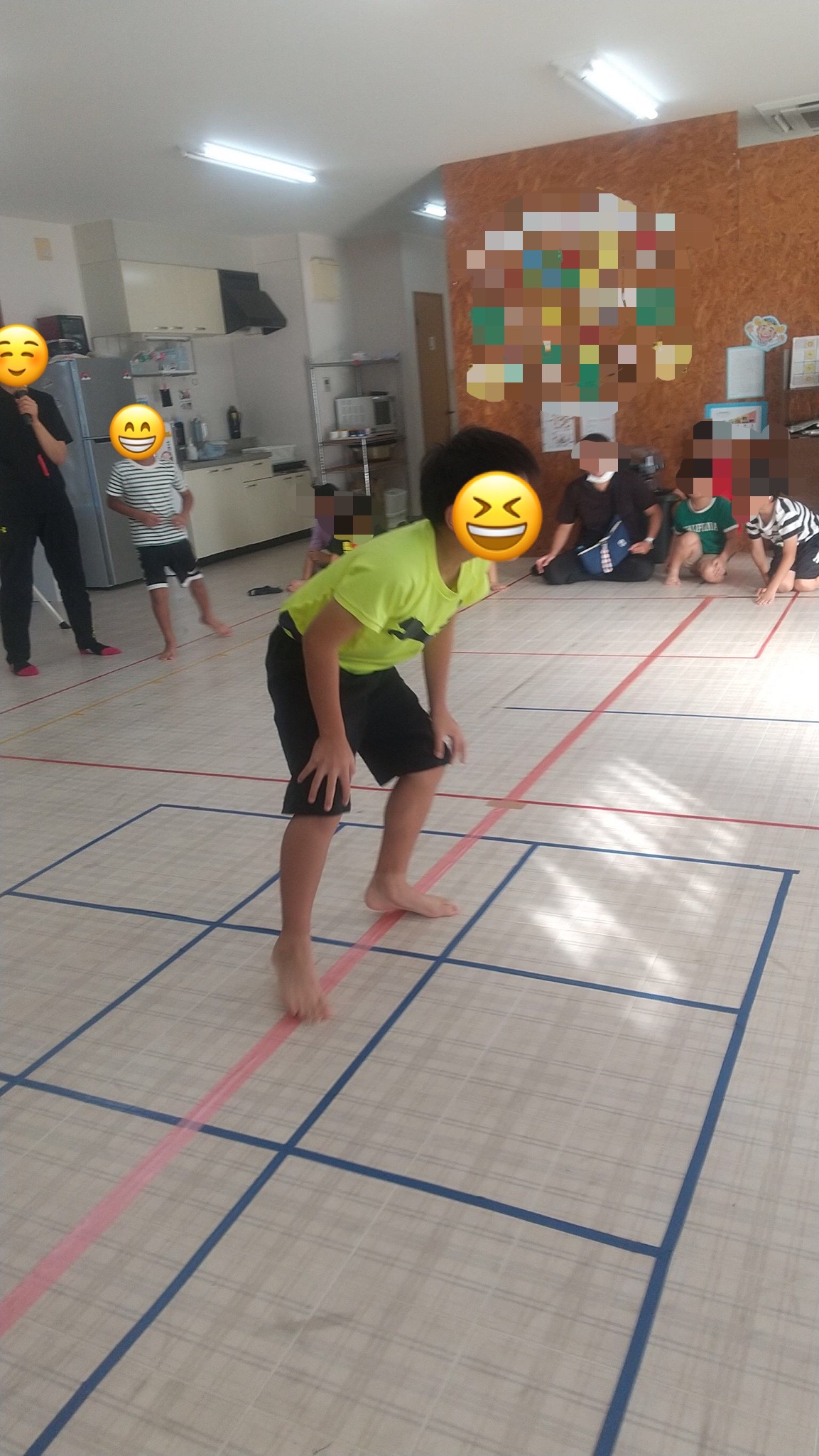 シャトルランの様な動きを、子供達は余裕な表情で20秒間の走り、終わった後も笑顔が見られました😀