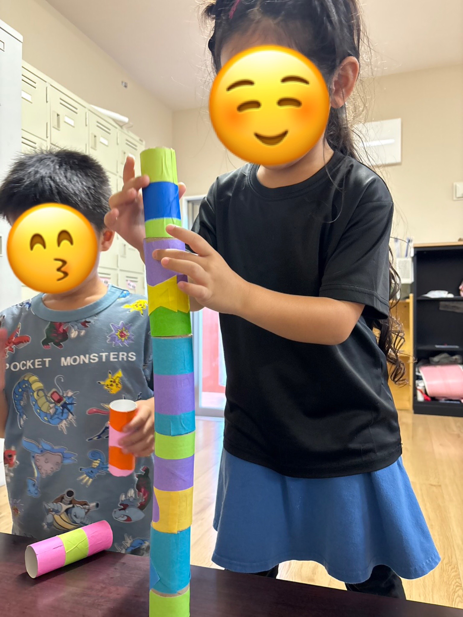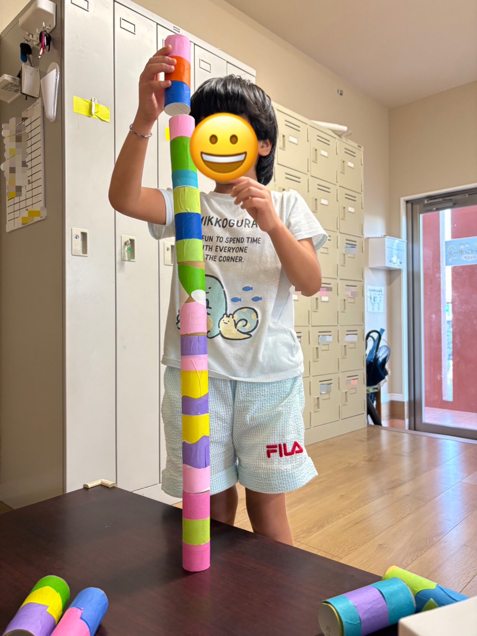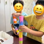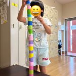 うちわでボールを運ぶ、トイレットペーパーを高く積み上げるなどの訓練をして、