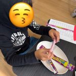 ストローでシャボン玉を作る係りの子は、うまくできなくても怒らず何度も挑戦します!