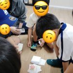 お話の後には、ダチョウとエミューの本物の卵を持たせてもらったり、触らせてもらっています。