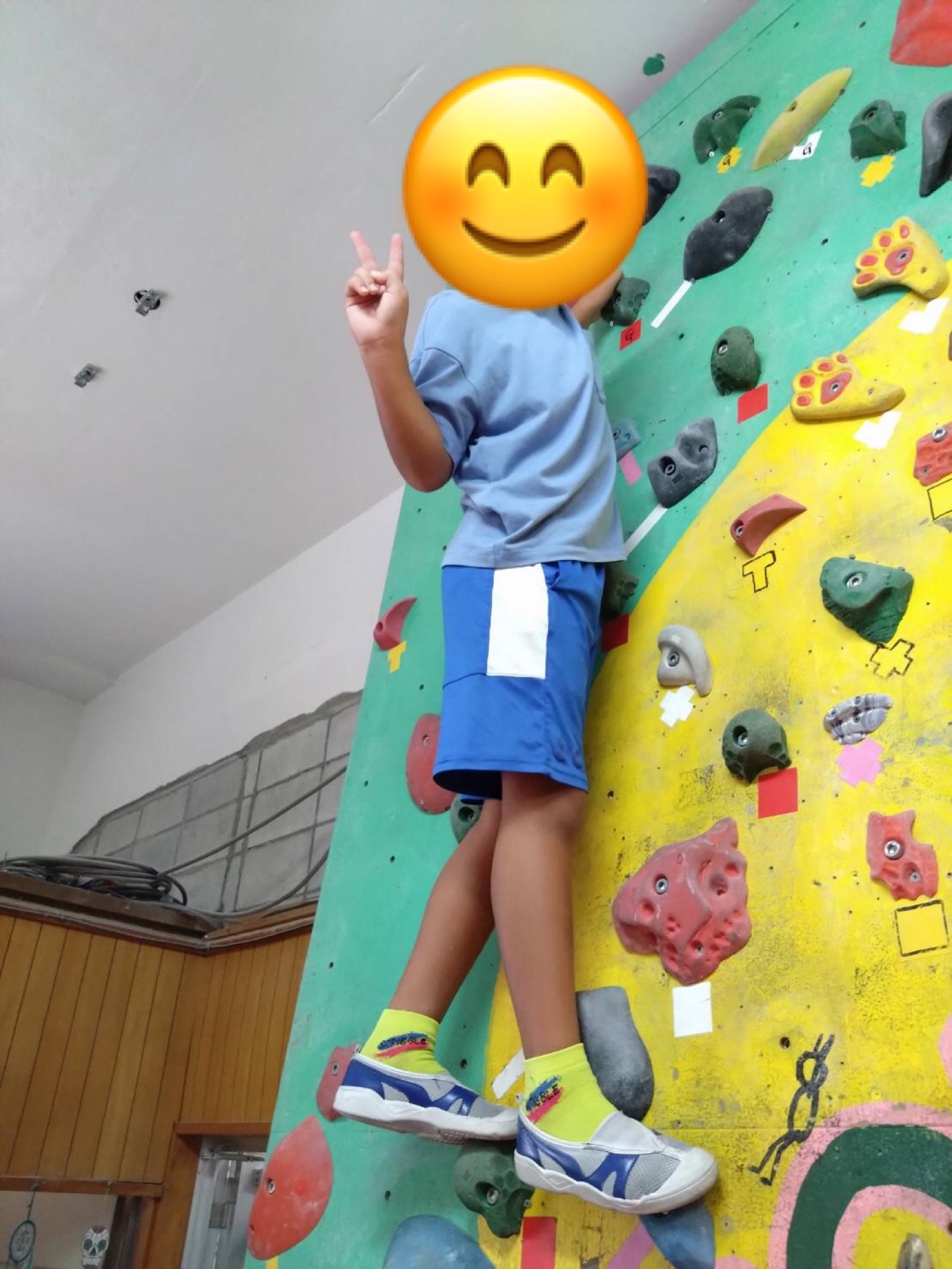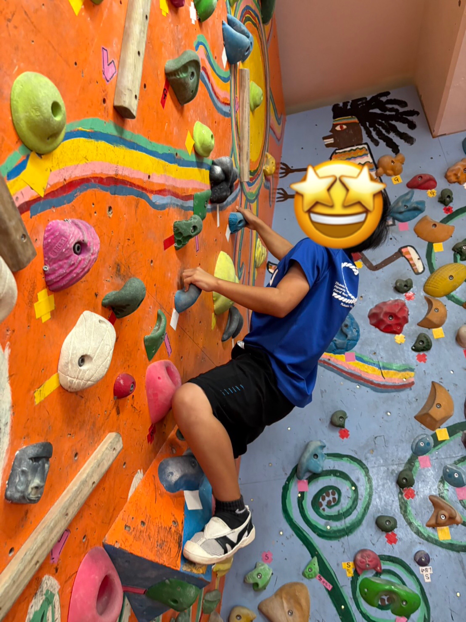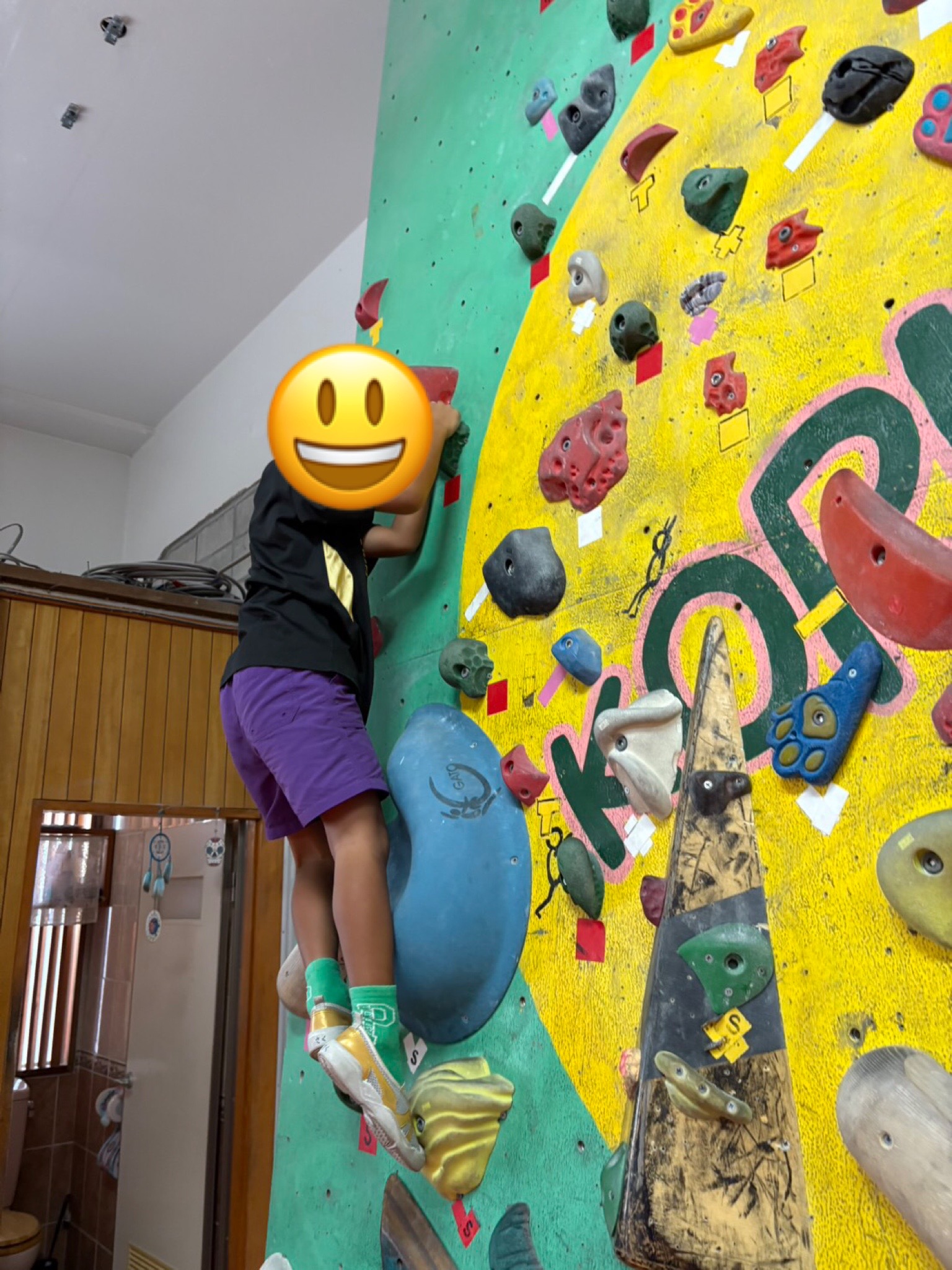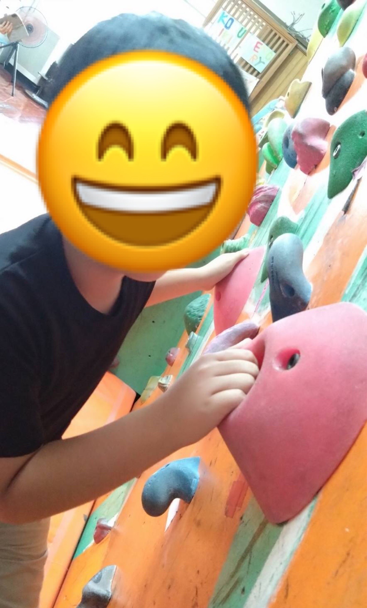 ボルダリングの回数が少ない児童は初心者コースから始めます。初めは、不安そうな表情も見られたがスタッフが傍にいる安心感もあり、何度も挑戦してゴールに辿り着くことが出来ました😃✌️