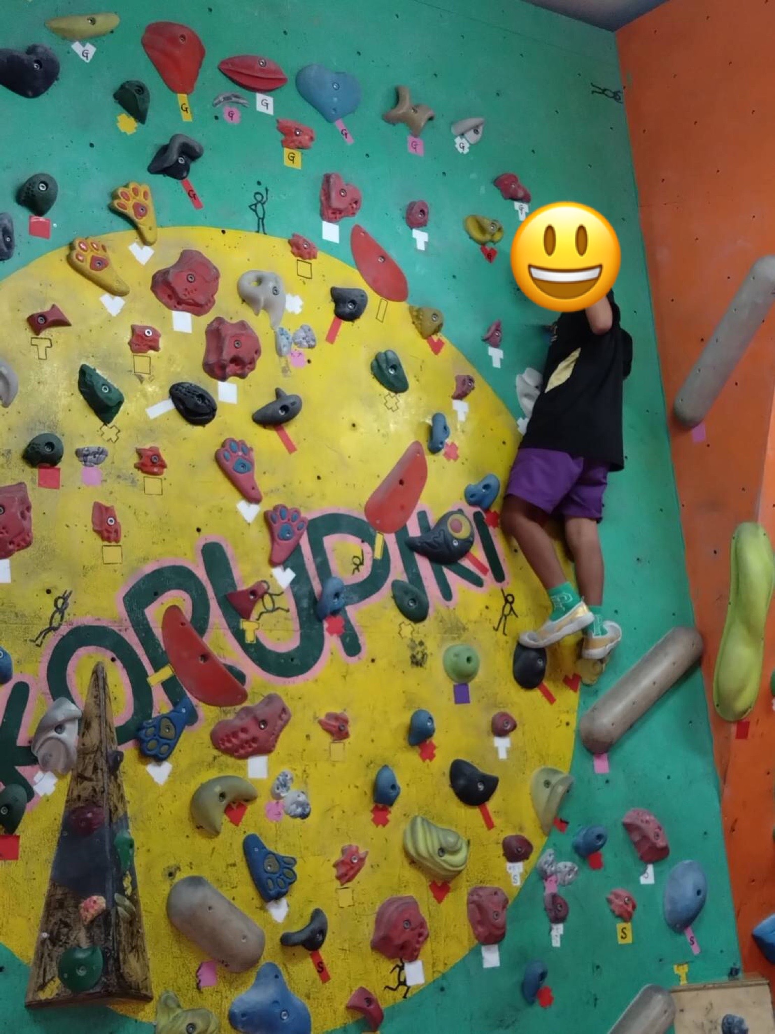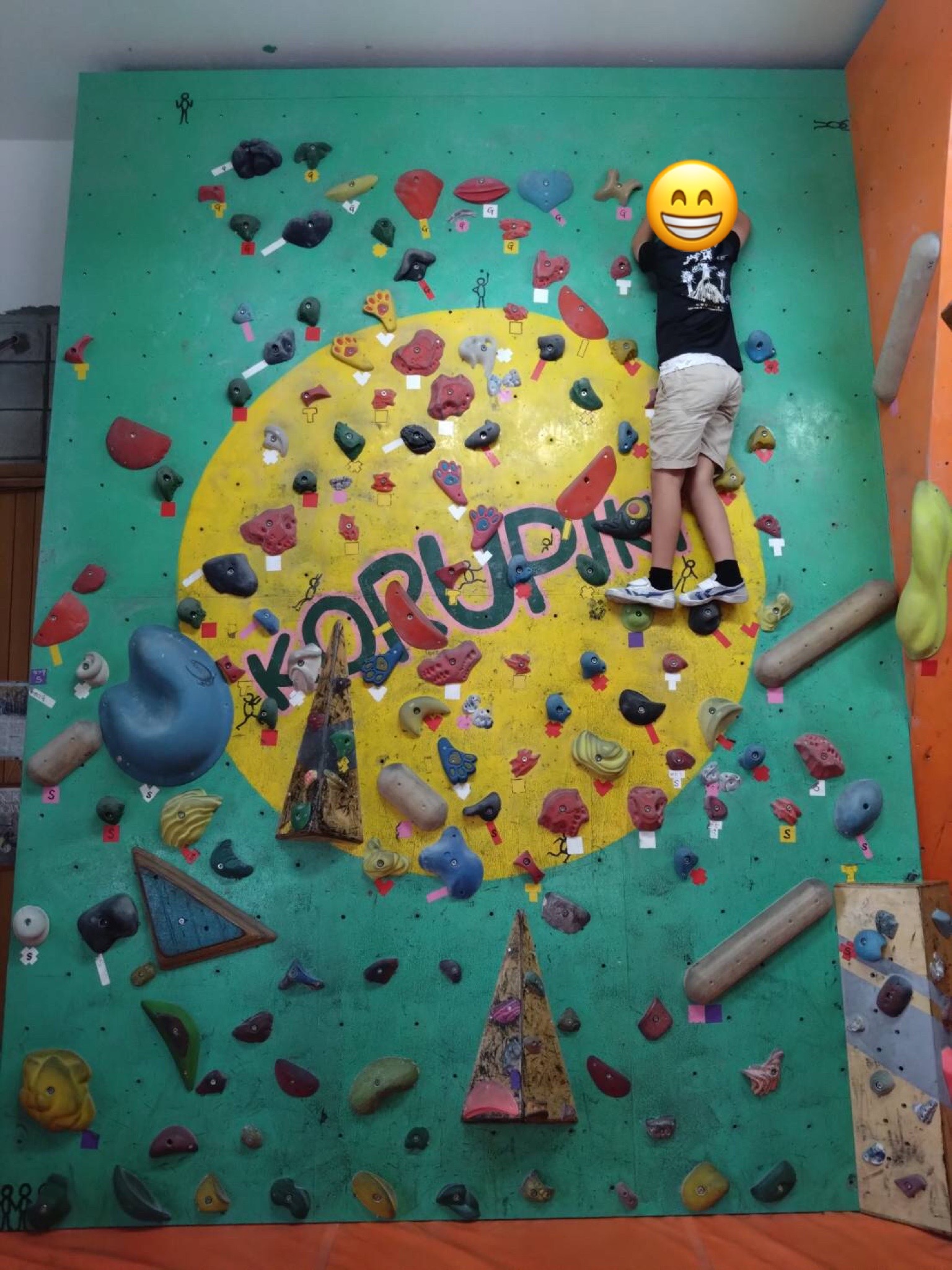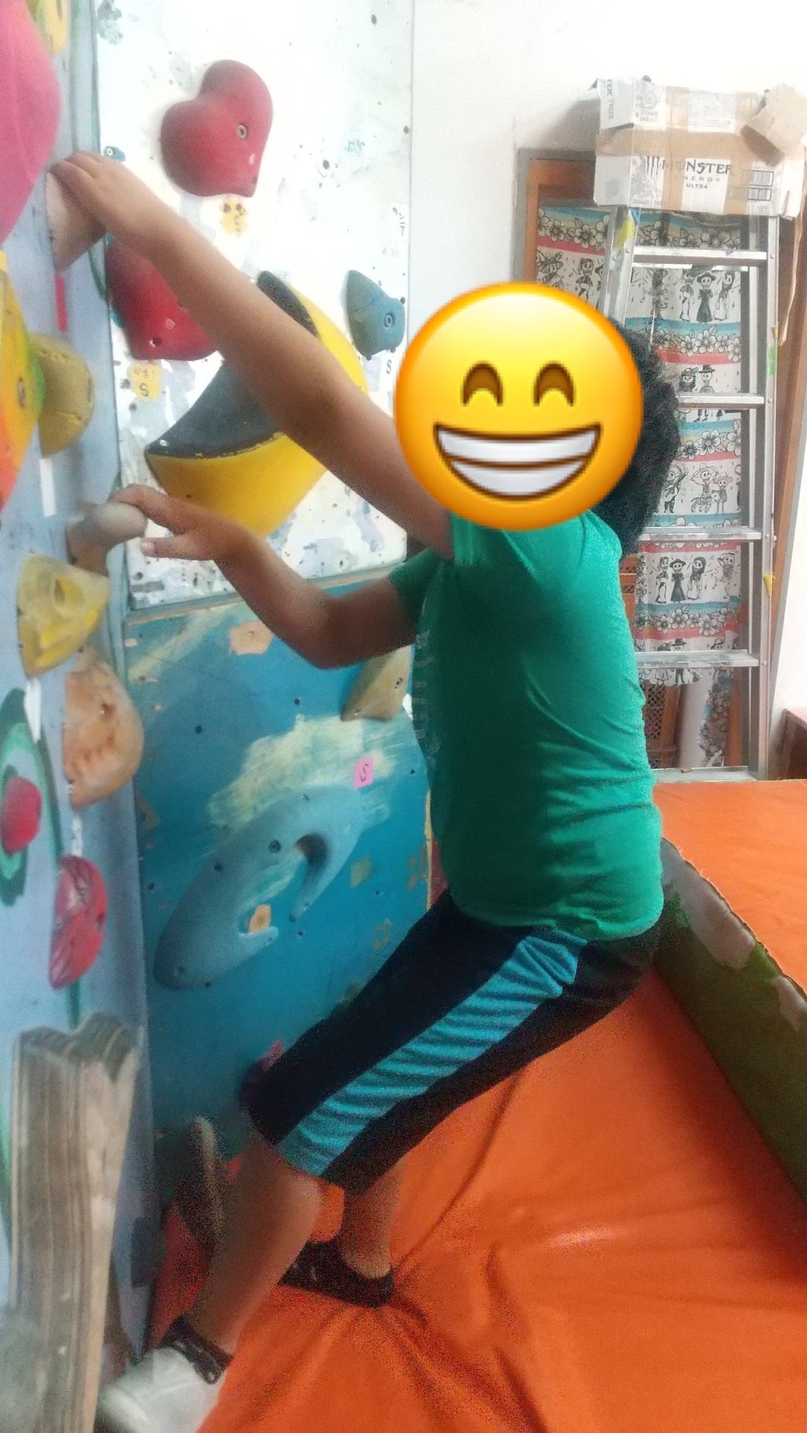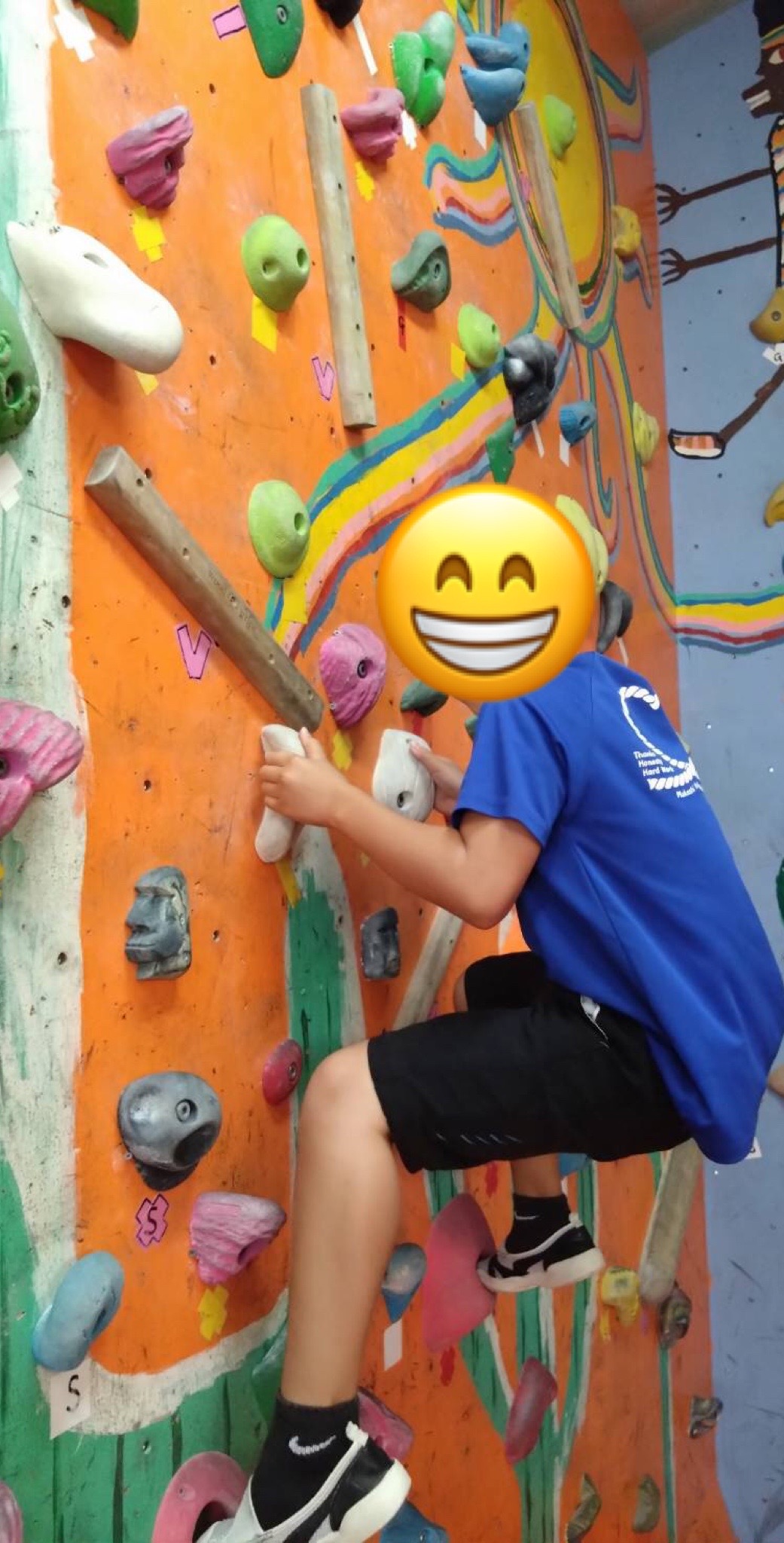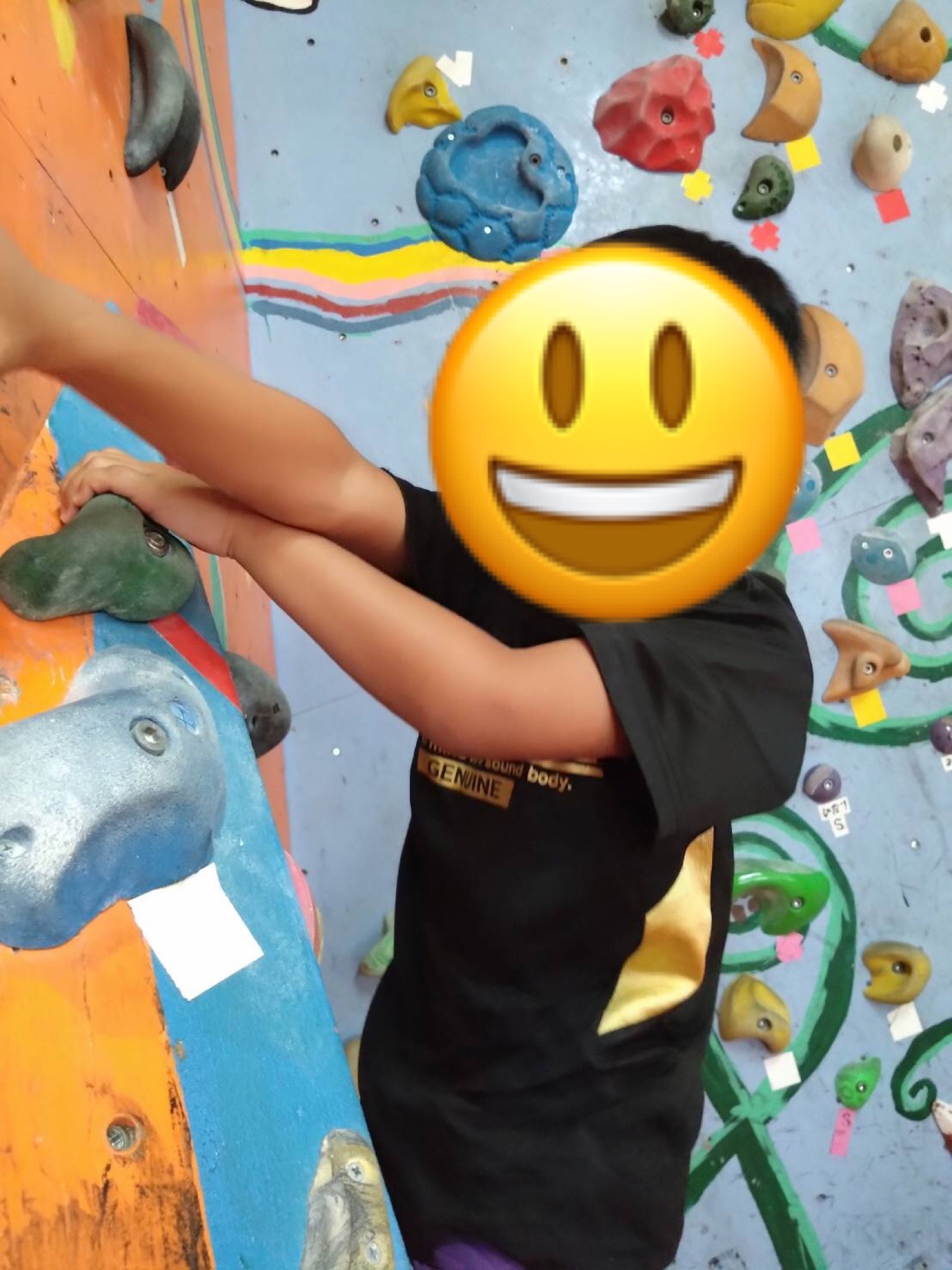 ボルダリングの回数が少ない児童は初心者コースから始めます。初めは、不安そうな表情も見られたがスタッフが傍にいる安心感もあり、何度も挑戦してゴールに辿り着くことが出来ました😃✌️